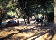 18:00h (2091mi / 3365km) Moro Rock (2050m Höhe, von denen man mindestens die letzten 50m über enge Treppen und Felswege auf den riesigen freistehenden Klippenfelsen hinaufklettert) Sonnenuntergang angeschaut. Selbst auf diesem abgelegenen Felsen oben trifft man auf Würzburger Physiker (einen Mitstudent von Volker). Tunnel Log (ein Mammutbaum zum Durchfahren) 19:45h (2106mi / 3389km) Zeltplatz "Potwisha" in den Foothills des Sequoia Parks, auf 634m Höhe Zelt aufbauen, kein Feuer, unterhalten. Zum Schutz vor Bären und zum Schutz der Bären muss hier alles was irgendwie appetitlich riecht, vom Keks bis zur Zahnpasta, in Bären-sicheren Boxen verwahrt werden, die bei jeder Zeltfläche stehen. Wenn die Bären lernen, dass sie dem Geruch folgend an Nahrung und Dope gelangen können, kommen sie immer wieder auf die Zeltplätze, werden aufdringlich, aggressiv, zerstören sogar Autos um an den Inhalt zu gelangen und müssen letztlich erschossen werden. 22:00h Ende unseres Tages. Tagesfahrstrecke: 126mi / 203km |