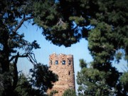 Einkaufen in Page Highway 89 nach Süden. 11:30h (3230mi / 5198km) Fotostop mit Blick von oben auf den Marble Canyon, als große Spalten- / Riß- und Canyonstruktur in der Ebene des Coloradoplateaus. 12:25h (3291mi / 5296km) Abbiegen auf die Arizona State Route 64 zum Grand Canyon. 12:45h erster Fotostop mit Blick auf die Canyonlandschaft im Hintergrund. 13:05h (3322mi / 5346km) Einfahrt in den Grand Canyon National Park Aussichtsturm und Merchandising am Dessert View Point.